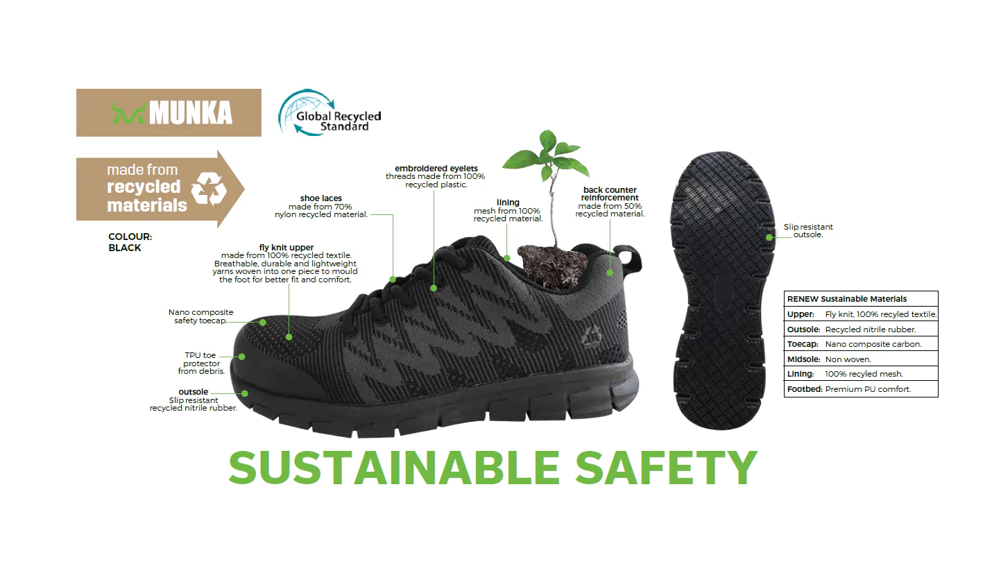 The Renew is a super lightweight protective sneaker made from high quality recycled materials.